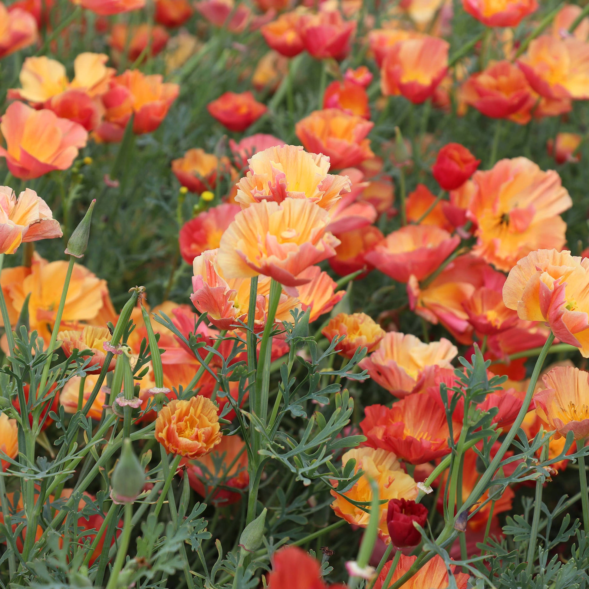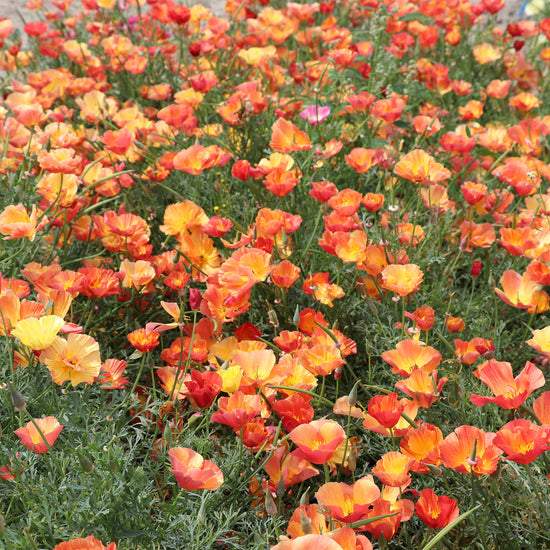 This variety is part of the "California Thai Silk Poppies" series. A beautiful specimen of the Eschscholzia Californica family, the Apricot Chiffon variety is a glorious plant with stunning blooms. A bi-color poppy species, creamy yellow doubled petals are tinged with an intense coral orange, creating a stunning and powerful visual effect. For any lover of poppies, Apricot Chiffon is not a specimen to be without, and whether planted in border or pot, it will add vibrant color to any space. Order your California poppy seeds Today with Fontana Seeds.