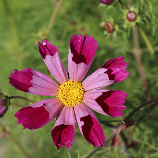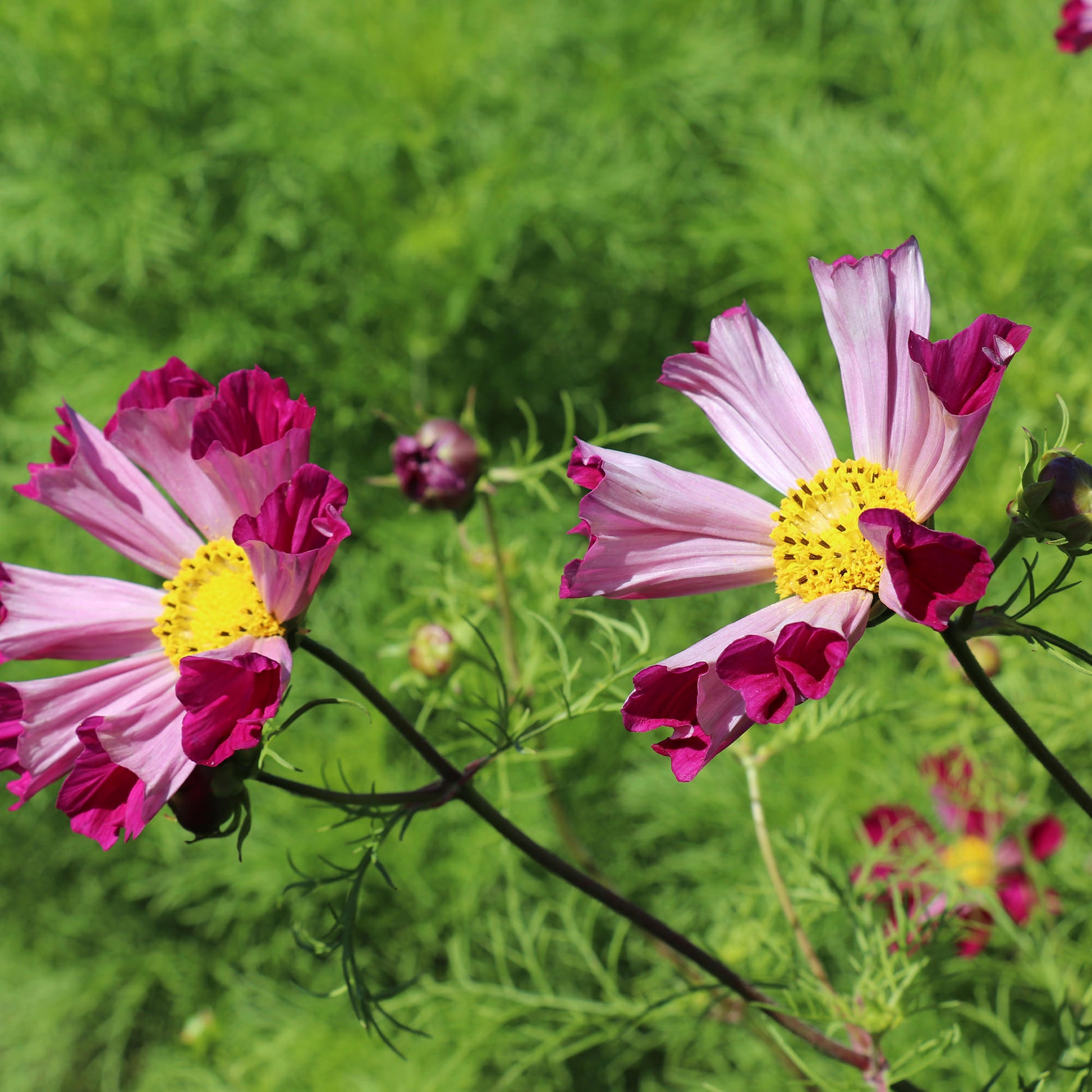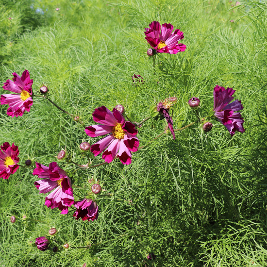 Exquisite tubular fluted petals, with a deep pink inside. A half hardy annual that flowers the same year as sown. Long flowering vigorous plants with airy foliage. Every garden should have some Cosmos bipinnatus - so easy to grow, colourful and with a very long flowering season.