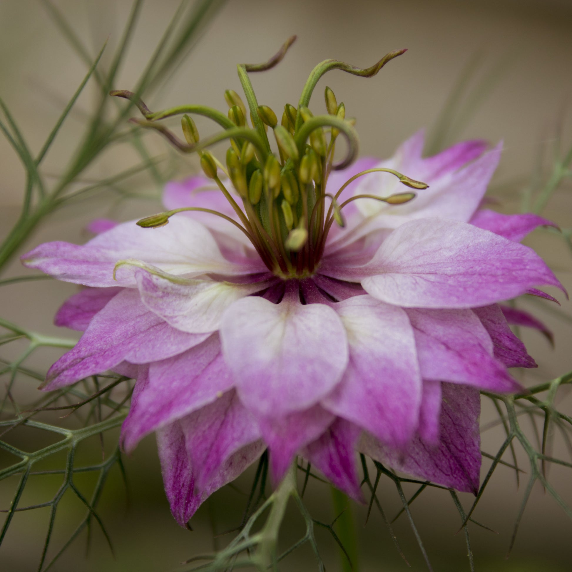 Nigella damascena 'Miss Jekyll Rose' (not actually a rose!) is a beautiful variety of Nigella prized for its delicate beauty, long bloom time, and rose-pink colored flowers.